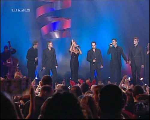 Westlife joined Mariah to introduce the medley Never Too Far / Hero.